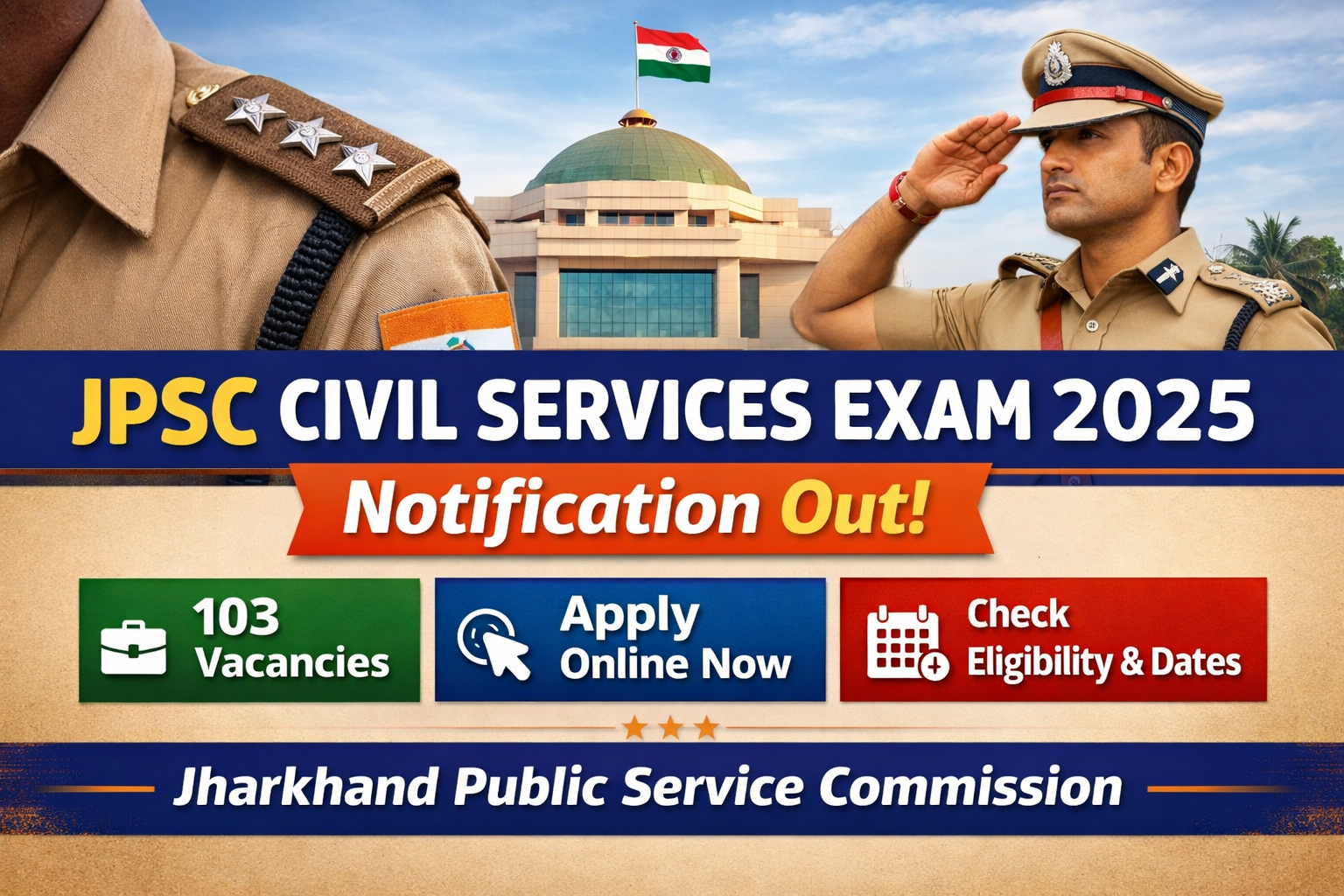 The Jharkhand Public Service Commission (JPSC) has announced the Combined Civil Services Competitive Examination 2025. Those who are interested in government jobs in Jharkhand can apply for this job. JPSC will recruit 103 candidates for different departments.